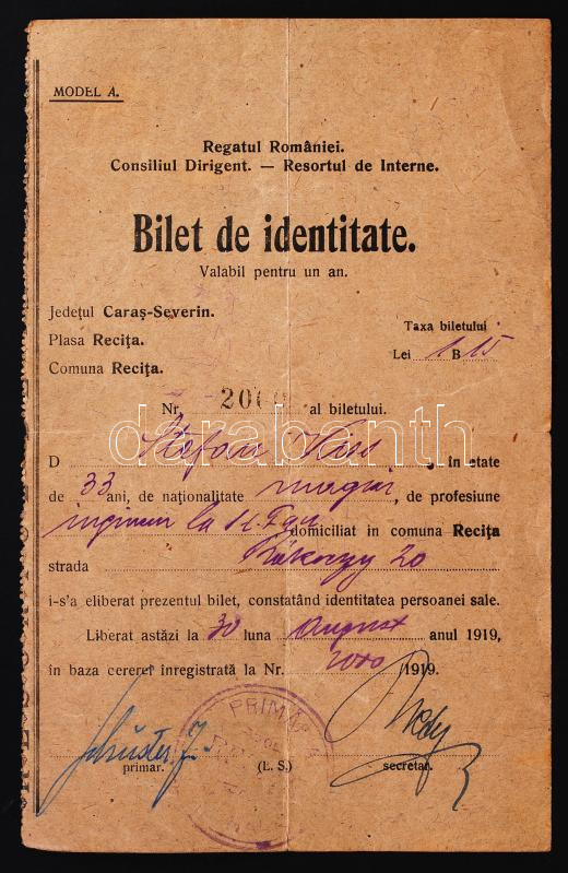 1919 Román személyazonossági igazolvány / Romanian ID https://www.darabanth.com/de/190-Fernauktion/190.0/Andere-Sammelgebiete/Dokument~800026/1919-Roman-szemelyazonossagi-igazolvany-Romanian-ID~II716393