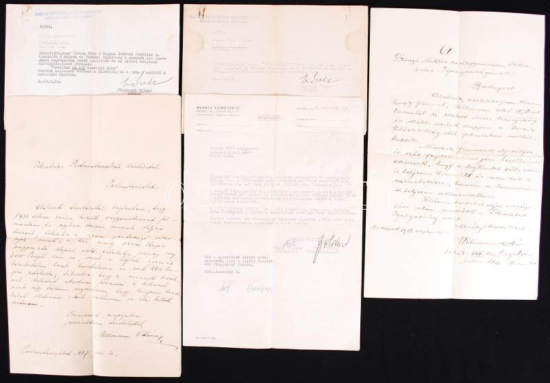 Beschreibung: Kis okmánytétel Ullmann Ottó (1920-2008) zeneszerző, dalszerző (Gézengúz, Nekem a Balaton a Riviéra etc.) hagyatékából, 5db hivatalos levél