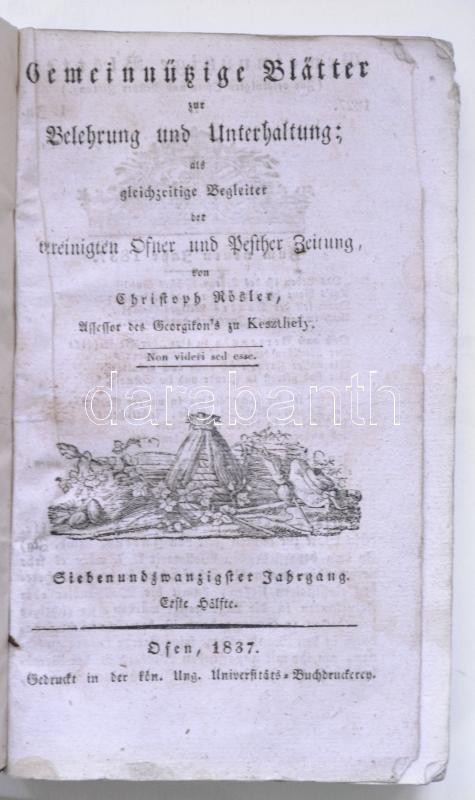 1837 Gemeinnützige Blätter zur Belehrung und Unterhaltung. Buda, I. fé... https://www.darabanth.com/de/190-Fernauktion/190.0/Andere-Sammelgebiete/Drucksachen~800042/1837-Gemeinnutzige-Blatter-zur-Belehrung-und-Unterhaltung-Buda-I-felev-Korabeli-papirkote~II716941