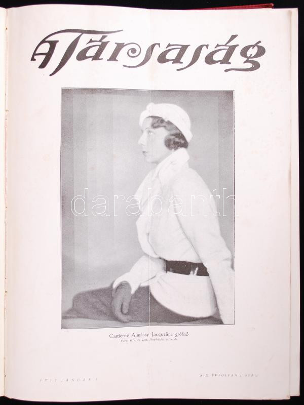 1932 A Társaság c. lap komplett évfolyama laza egészvászon kötésben https://www.darabanth.com/de/190-Fernauktion/190.0/Andere-Sammelgebiete/Drucksachen~800042/1932-A-Tarsasag-c-lap-komplett-evfolyama-laza-egeszvaszon-kotesben~II714591