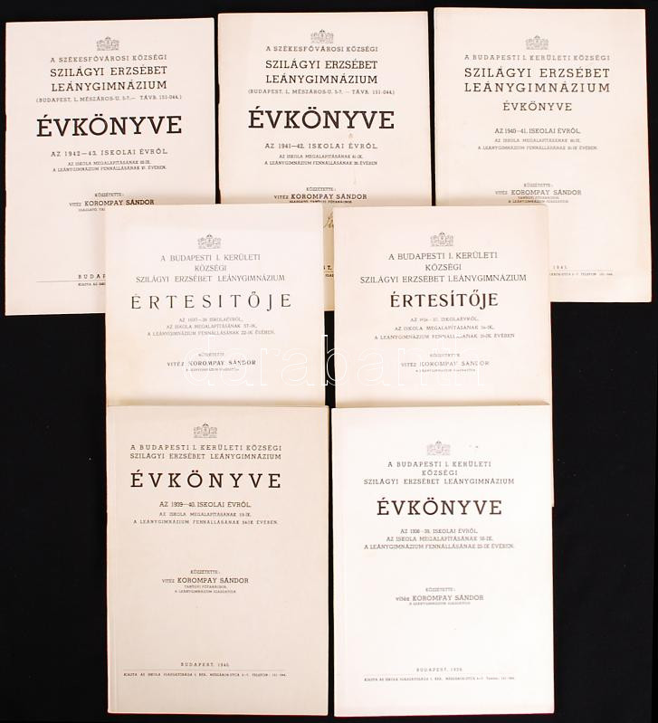1936-1942 A Szilágyi Erzsébet leánygimnázium évkönyvei össz 7 db https://www.darabanth.com/de/190-Fernauktion/190.0/Andere-Sammelgebiete/Drucksachen~800042/1936-1942-A-Szilagyi-Erzsebet-leanygimnazium-evkonyvei-ossz-7-db~II715307
