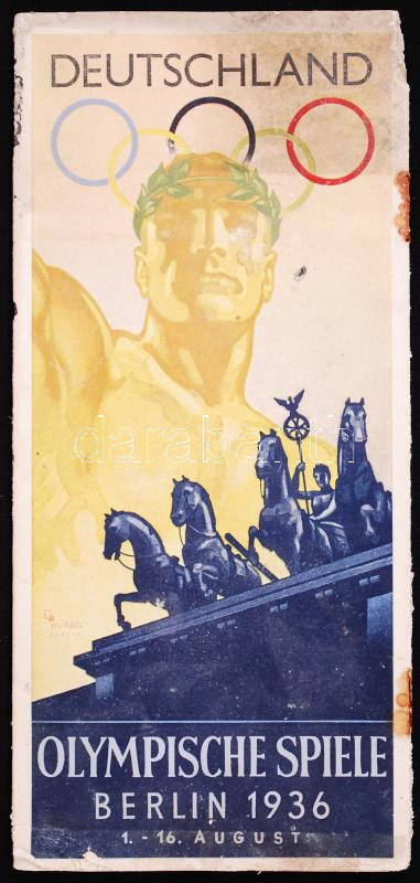 1936 Olympische Spiele Berlin. Prospektus a berlini olimpiáról részletes programmal, fotókkal, térképekkel és ábrákkal (viseltes állapotú) /