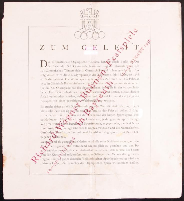Brochure of the Berlin Olympics with schedule, photos and maps (worn condition)