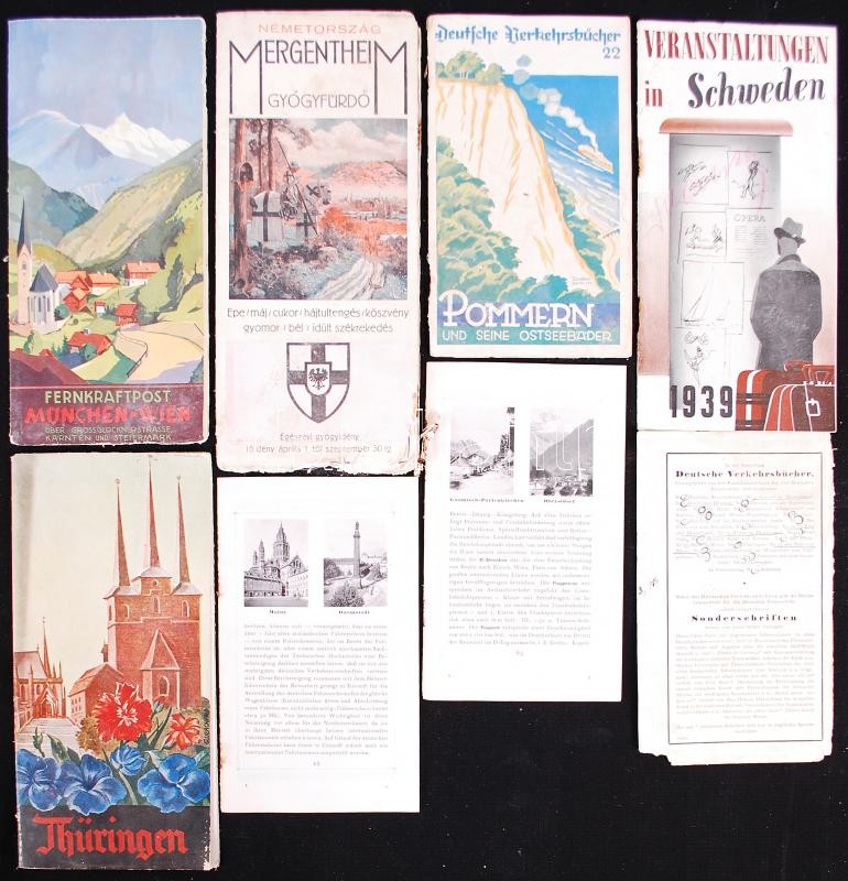 1945 előtt 20db, nagyrészt német nyelvű utazási prospektus /