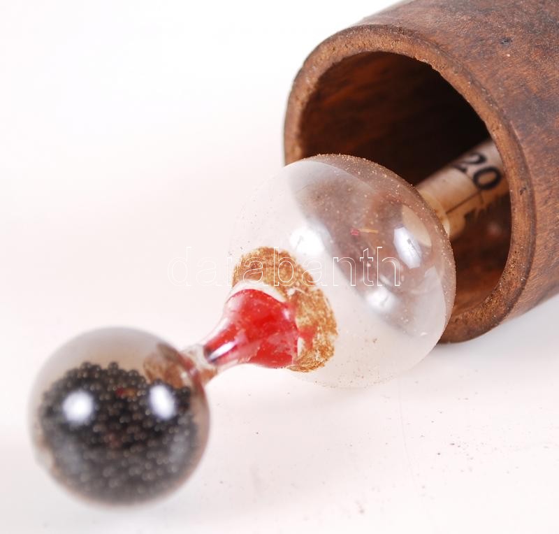 Beschreibung: Antik Wagner mustfokoló, fa tokban, h:17 cm