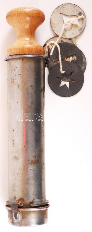 Cukrász tésztaszagtó, fém-fa, négy plusz fém formával, m:19 cm https://www.darabanth.com/de/190-Fernauktion/190.0/Andere-Sammelgebiete/Flohmarkt~800016/Cukrasz-tesztaszagto-fem-fa-negy-plusz-fem-formaval-m19-cm~II715268