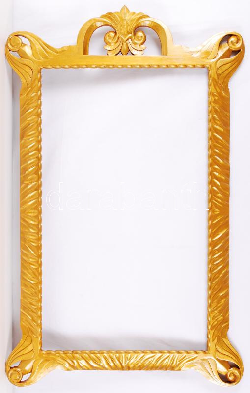 Egyedi készítésű dekoratív, faragott, arany színű szecessziós stílusú hársfa keret, hibátlan állapotban, belső: 75×44 cm, teljes méret: 100×61 cm / Hand crafted unique frame