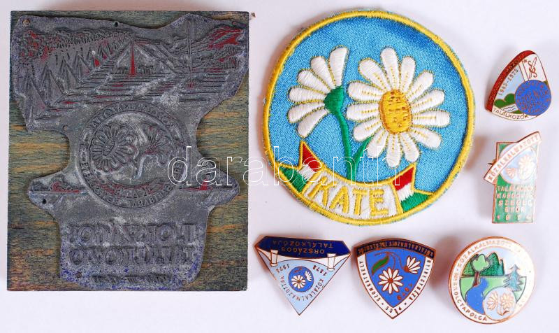 Beschreibung: Természetjáró tétel pecsétnyomó klisé, zománcozott jelvények, hímzett