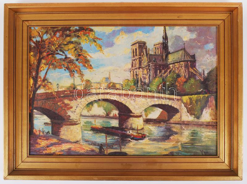 Beschreibung: Vvo jelzéssel: Temze part a Notre Dammal. Olajnyomat. Lyukas. Szép keretben 41×54 cm