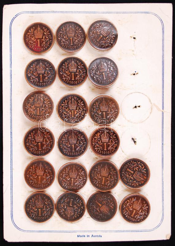 cca 1910 20 db osztrák 1 koronásokat ábrázoló régi fémgomb / Buttons d... https://www.darabanth.com/de/190-Fernauktion/190.0/Andere-Sammelgebiete/Flohmarkt~800016/cca-1910-20-db-osztrak-1-koronasokat-abrazolo-regi-femgomb-Buttons-depicting-1-Corona-coins~II716384
