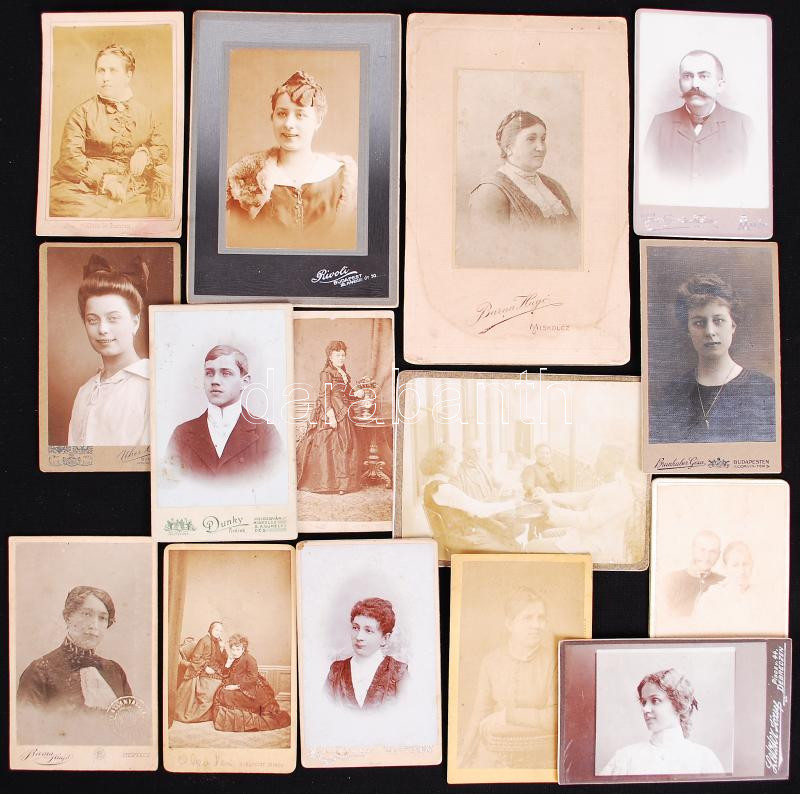 Beschreibung: 1860-1920 15db keményhátú fotó klf műtermekből (Klösz György, Szentkuty István etc.) klf méretben és minőségben