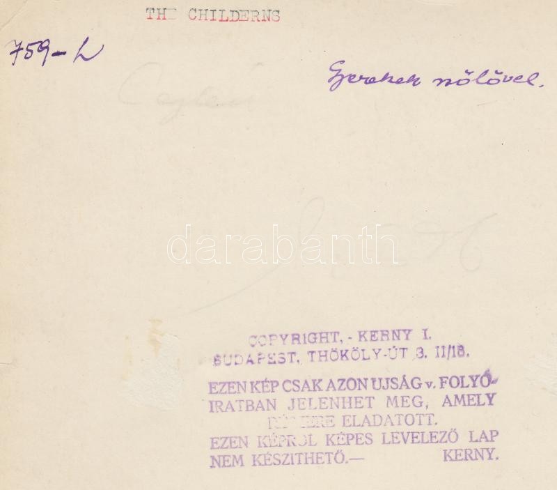 1922 Kerny István (1879-1963): Gyerekek szőlővel. Vintage alkotás, hát... https://www.darabanth.com/de/190-Fernauktion/190.0/Andere-Sammelgebiete/Foto~800031/1922-Kerny-Istvan-1879-1963-Gyerekek-szolovel-Vintage-alkotas-hatoldalan-szerzoi-pecset~II715031