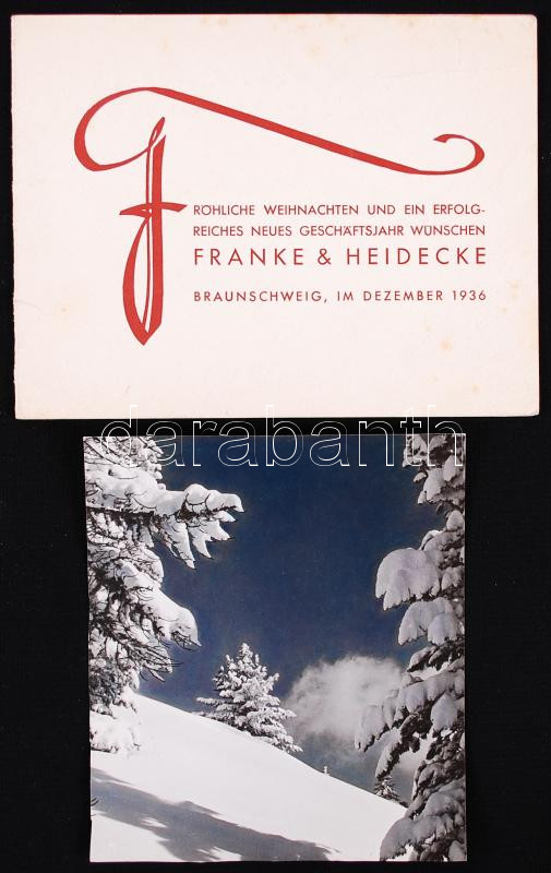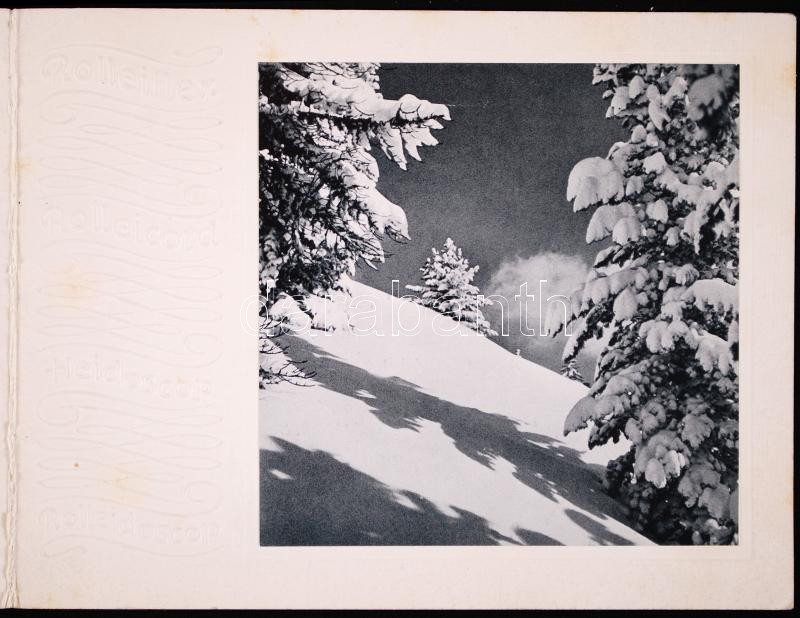 1936 Dr. Csörgeő Tibor (1869-1868): Téli tájkép. Vintage fotó. pecséttel jelezve, 14x13 cm; + Hozzáadva a Rolleiflex üdvözlőkártyát, amelyen a képet illusztrációként felhasználták, 17,5x13,5 cm