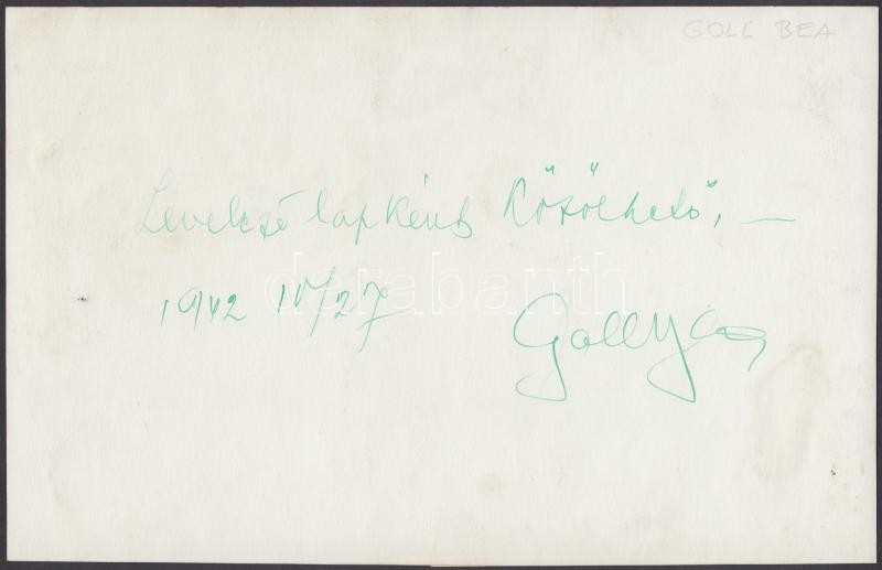 1942 Inkey Tibor (1908-1998): Goll Bea színésznő portréja. Vintage fel... https://www.darabanth.com/de/190-Fernauktion/190.0/Andere-Sammelgebiete/Foto~800031/1942-Inkey-Tibor-1908-1998-Goll-Bea-szineszno-portreja-Vintage-felvetel-a-kep-hatoldala~II715861