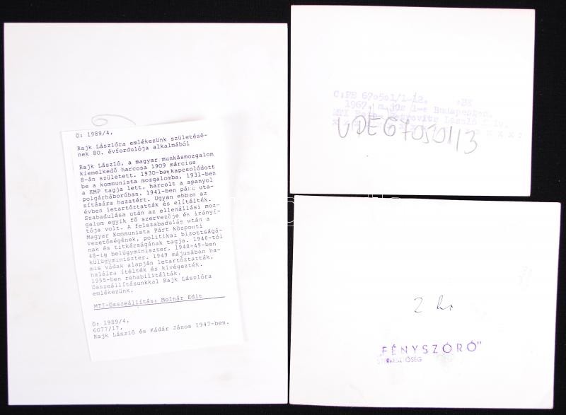 Beschreibung: 1950-1990 11 db kfl méretű fotó Kádár Jánosról és más politikusokról, a fotók egy része feliratozott, vegyes minőség
