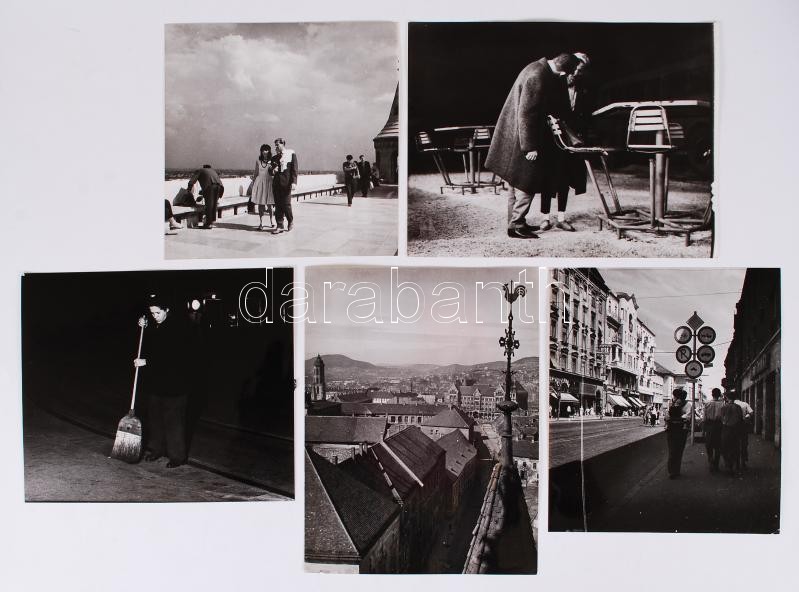 1950-70 Kotnyek Antal (1921-1990): 11 db budapesti városkép, életkép. Vintage kópiák, jelzés nélküli képek az alkotó hagyatékából, 18x18 cm és 18x24 cm között