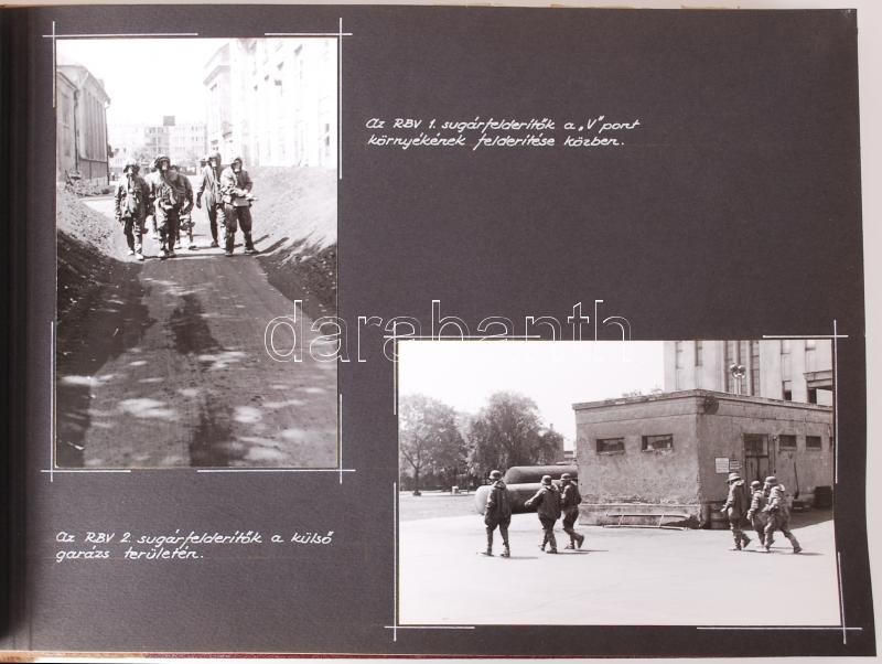 1968 A posta Központi Járműtelep polgári védelmi szervezetének 1968. évben rendezett ellenőrző harcászati gyakorlata. Fotóalbum, 36db feliratozott fotóval