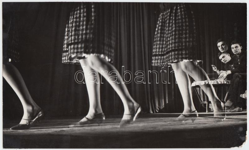Beschreibung: Cca 1950 Ismeretlen szerző: Kíváncsiság. Felvételi fotómontázs (B idővel, három vakuvillanással, közben a modellek elmozdulnak), 14x24 cm