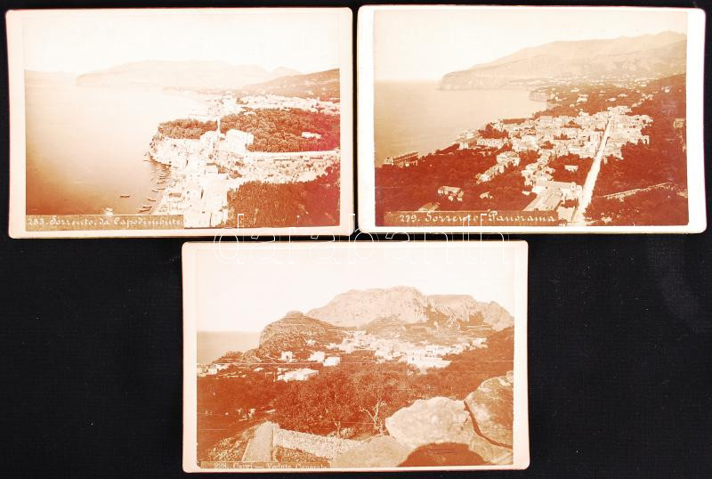 Beschreibung: cca 1880 Sorrento és Capri 3 db keményhátú fotó / Italy vintage photos 17x11 cm