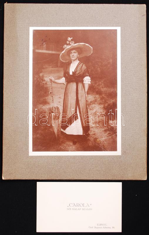 cca 1900 A Carola női kalapszalon névjegye és egy fénykép a szalon kre... https://www.darabanth.com/de/190-Fernauktion/190.0/Andere-Sammelgebiete/Foto~800031/cca-1900-A-Carola-noi-kalapszalon-nevjegye-es-egy-fenykep-a-szalon-kreaciojarol-kartonra-k~II713316