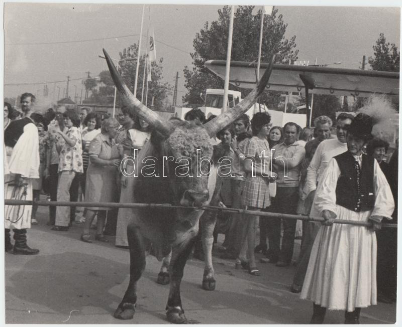 cca 1960 A Hortobágy bikája. Budapest, BNV mezőgazdasági kiállítás, 17... https://www.darabanth.com/de/190-Fernauktion/190.0/Andere-Sammelgebiete/Foto~800031/cca-1960-A-Hortobagy-bikaja-Budapest-BNV-mezogazdasagi-kiallitas-17x21cm~II713317