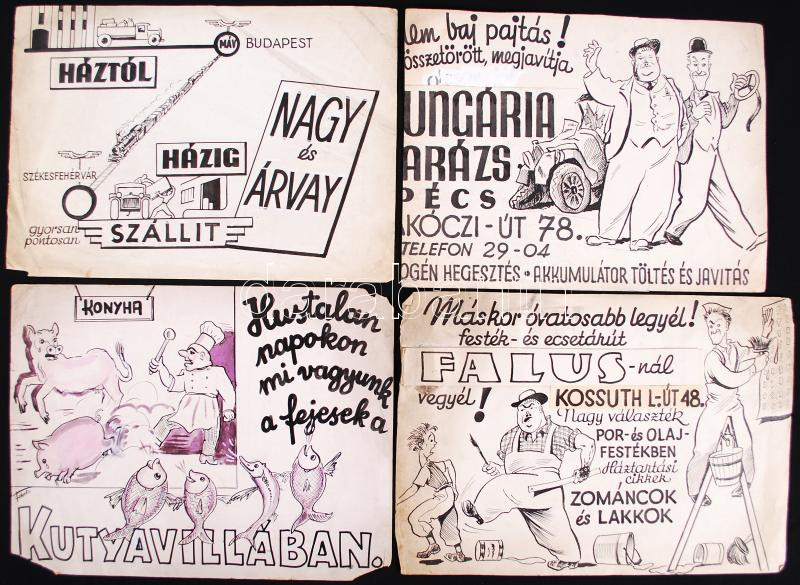 1930-1940 4db fekete-fotó reklámgrafikája üzletekről, szolgáltatásokró... https://www.darabanth.com/de/190-Fernauktion/190.0/Andere-Sammelgebiete/Gemalde-und-Grafiken~800001/1930-1940-4db-fekete-foto-reklamgrafikaja-uzletekrol-szolgaltatasokrol-Ezekbol-keszult~II716163