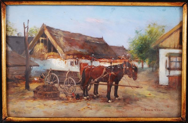 Németh György: Tyúkudvar lovas kocsival. Olaj, fa, antik keretben, 17×... https://www.darabanth.com/de/190-Fernauktion/190.0/Andere-Sammelgebiete/Gemalde-und-Grafiken~800001/Nemeth-Gyorgy-Tyukudvar-lovas-kocsival-Olaj-fa-antik-keretben-17C39726-cm~II714521