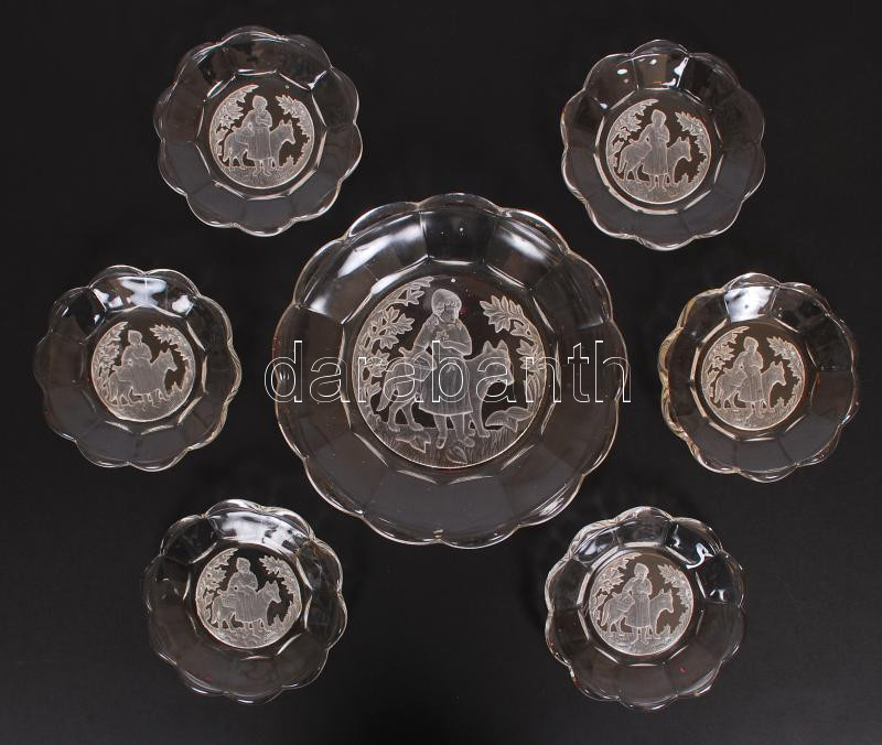 Piroska és a farkas, antik süteményes készlet, homok fújt, hibátlan, https://www.darabanth.com/de/190-Fernauktion/190.0/Andere-Sammelgebiete/Glaser~800007/Piroska-es-a-farkas-antik-sutemenyes-keszlet-homok-fujt-hibatlan-~II713226
