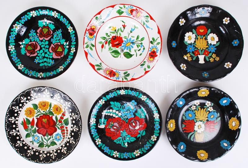 Beschreibung: Gránit tányérok, kézzel festett, jelzett, néhányon festék nyomok, hibátlanok, d:23 cm, összesen 6 db