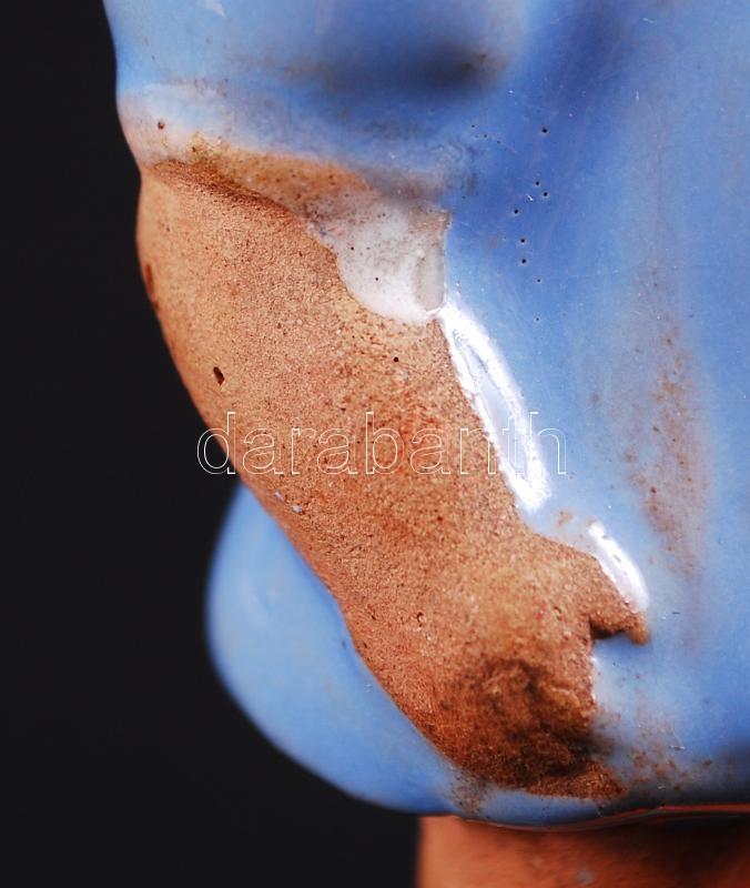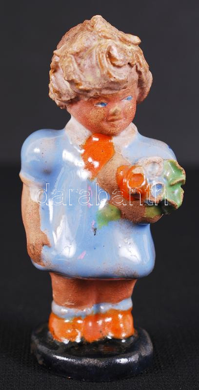 Beschreibung: Kék ruhás kislány virággal. Jelzett "Szécsi Kerámia Budapest", kézzel festett, mázas kerámiafigura (apró lepattanással) /