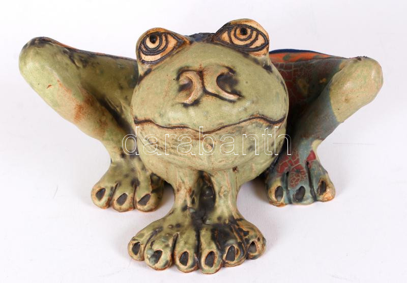 Beschreibung: Vertel Andrea (1953-): Béka. Festett kerámia, jelzett, hibátlan, m:14 cm, sz:27 cm