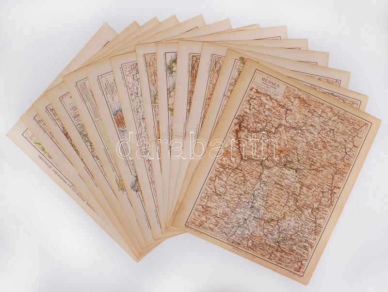 Beschreibung: Cca 1890 A Meyers Konv. Lexikon 13 db dupla oldalas térképe európai országokról, tartományokról. 31x25 cm
