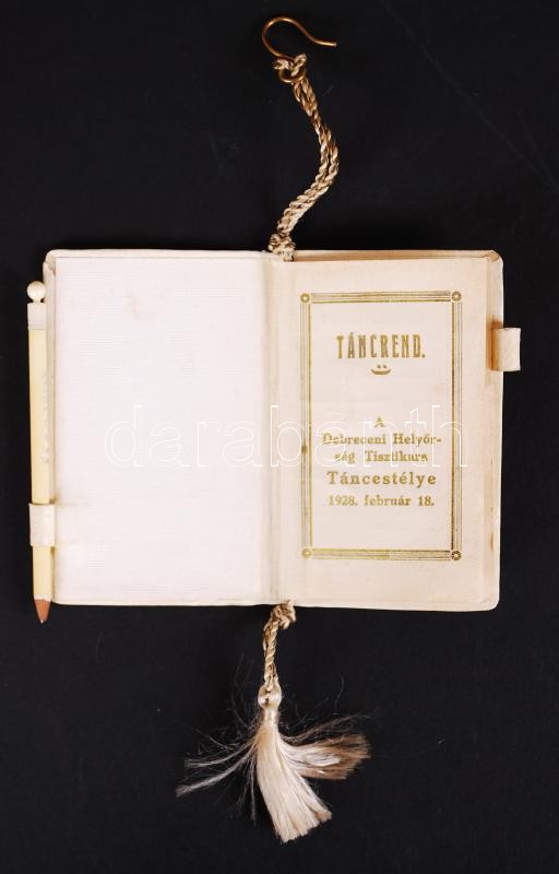 1928 Táncrendtartó a kis ceruzával "Debreceni Helyőrségi Tiszti Tánces... https://www.darabanth.com/de/190-Fernauktion/190.0/Andere-Sammelgebiete/Militaria~800010/1928-Tancrendtarto-a-kis-ceruzaval-Debreceni-Helyorsegi-Tiszti-Tancestely-felirattal-8C3975-~II716388