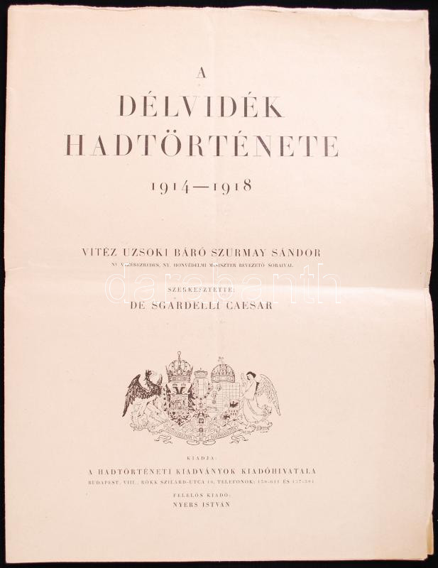 De Sgardelli Caesar: A Délvidék hadtörténete 1914-1918 16 oldalas rekl... https://www.darabanth.com/de/190-Fernauktion/190.0/Andere-Sammelgebiete/Militaria~800010/De-Sgardelli-Caesar-A-Delvidek-hadtortenete-1914-1918-16-oldalas-reklam-nyomtatvany~II714788