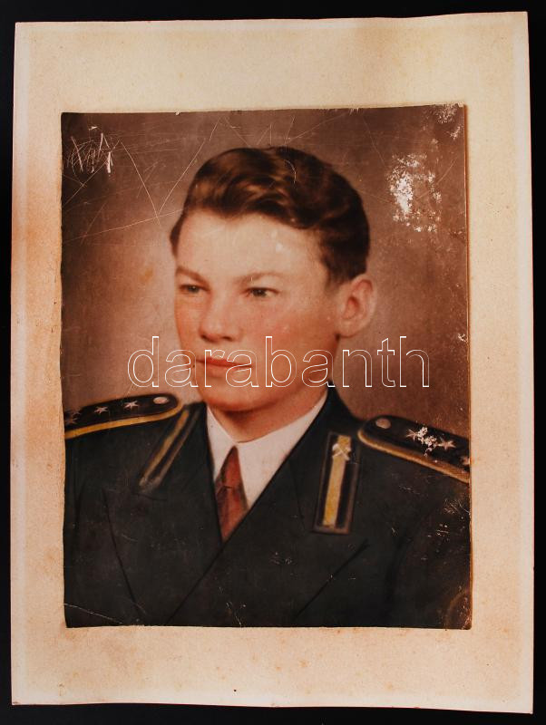 Szovjet katona fotó, színezett, karcolás több helyen, 29×22 cm https://www.darabanth.com/de/190-Fernauktion/190.0/Andere-Sammelgebiete/Militaria~800010/Szovjet-katona-foto-szinezett-karcolas-tobb-helyen-29C39722-cm~II712811