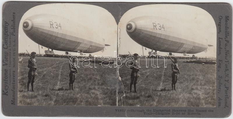 cca 1918 I. világháború. Amerikai R-34 katonai zeppelin. Sztereófotó kis hibával. /