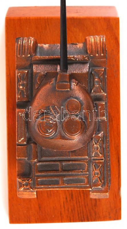 Beschreibung: cca 1980 T-54-es harckocsi makettje, fém, gumi, fa talapzaton /