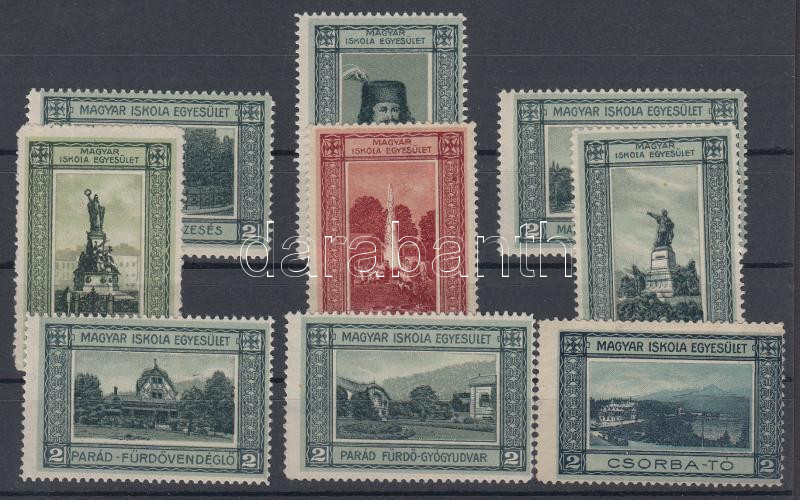 1930 Magyar Iskola Egyesület: nevezetességek, 9db-os levélzáró sor https://www.darabanth.com/de/190-Fernauktion/190.0/Andere-Sammelgebiete/Paraphilatelie~800022/1930-Magyar-Iskola-Egyesulet-nevezetessegek-9db-os-levelzaro-sor~II717814