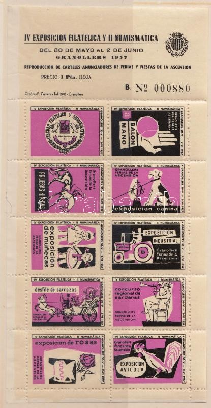 1957-1958 2 db spanyol levélzáró kisív, az egyik filatéliai és numizma... https://www.darabanth.com/de/190-Fernauktion/190.0/Andere-Sammelgebiete/Paraphilatelie~800022/1957-1958-2-db-spanyol-levelzaro-kisiv-az-egyik-filateliai-es-numizmatikai-kiallitas-temC3~II717156