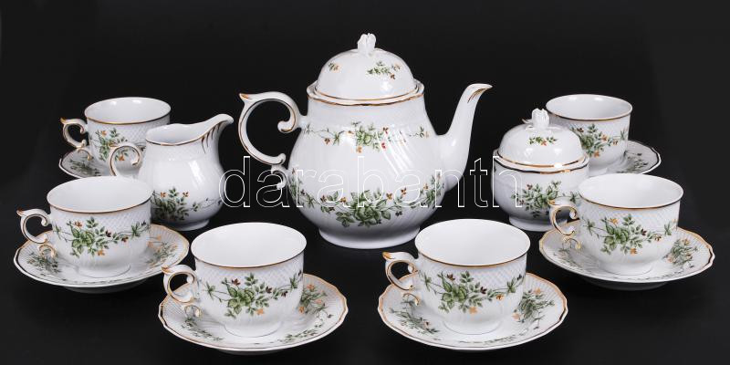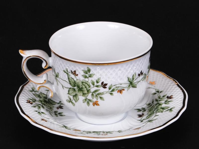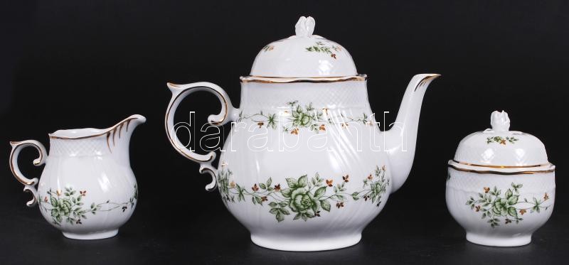 Beschreibung: Hollóházi Erika teás készlet, jelzett, matricás, rózsán apró lepattanás / Hollohaza porcelain tea set