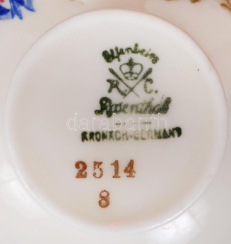Rosenthal 6 db csésze és alj, jelzett, matricás, hibátlan https://www.darabanth.com/de/190-Fernauktion/190.0/Andere-Sammelgebiete/Porzellan~800006/Rosenthal-6-db-csesze-es-alj-jelzett-matricas-hibatlan~II712356