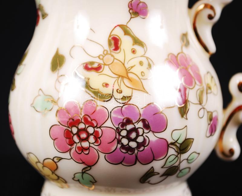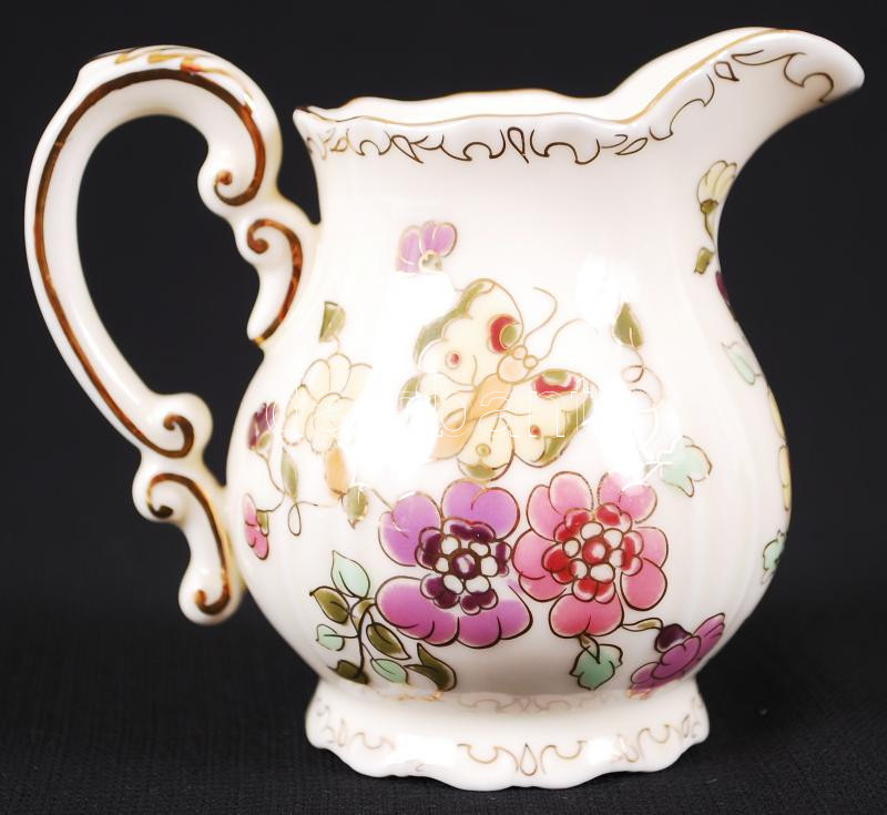 Beschreibung: Zsolnay pillangós tejkiöntő, kézzel festett, jelzett, hibátlan, pótlás céljából, m:9 cm