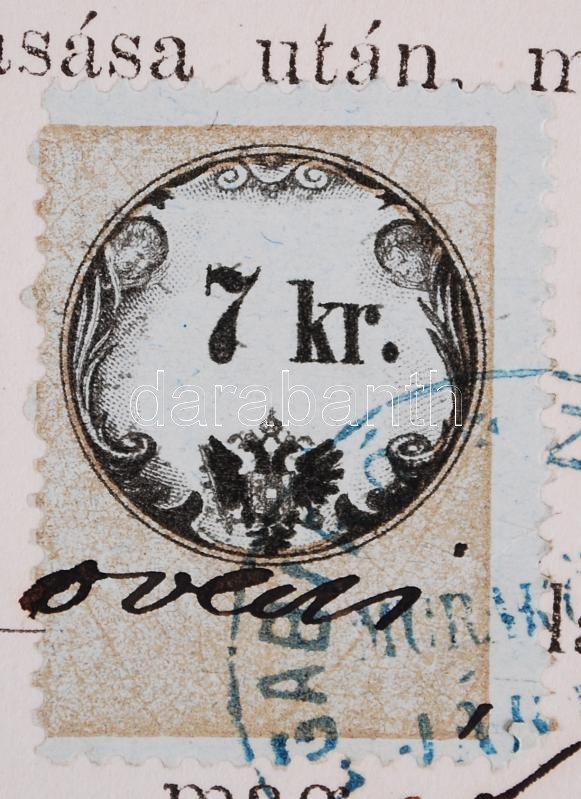 1865 Tárgyalási jegyzőkönyv 5krB + 2x7krA, vízjeles, keskenyre fogazot... https://www.darabanth.com/de/190-Fernauktion/190.0/Andere-Sammelgebiete/Stempelmarken~800024/1865-Targyalasi-jegyzokonyv-5krB-plus-2x7krA-vizjeles-keskenyre-fogazott-illetekbelyeggel~II715837