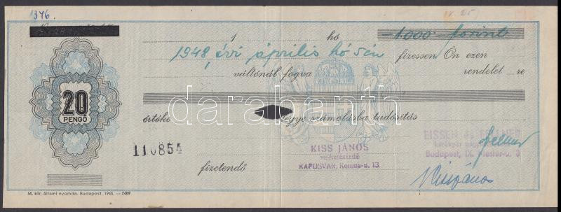 Beschreibung: 1945 évi felülnyomott váltó (Flóderer 523.) 1948. augusztusában felhasználva 230p.
