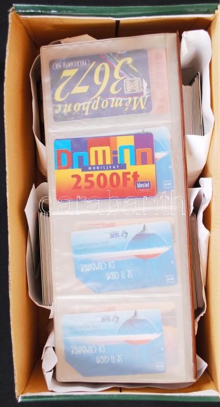 Beschreibung: 350 db magyar és 40 db külföldi telefonykártya, cipős dobozban