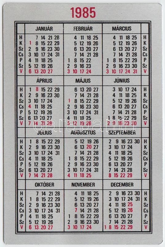 1985 Alumínium vicces kártyanaptár, apró folttal https://www.darabanth.com/de/190-Fernauktion/190.0/Andere-Sammelgebiete/Werbungen~800033/1985-Aluminium-vicces-kartyanaptar-apro-folttal~II715499