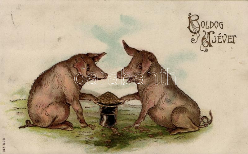 New Year, pigs with money, Emb. litho https://www.darabanth.com/de/190-Fernauktion/190.0/Ansichtskarten/GruC39Fkarte~800126/New-Year-pigs-with-money-Emb-litho~II716723