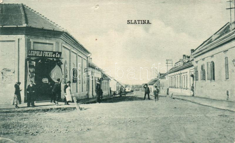 Slatina, Podravska Slatina; the shop of Leopold Fuchs https://www.darabanth.com/de/190-Fernauktion/190.0/Ansichtskarten/Kroatien~400009/Slatina-Podravska-Slatina-the-shop-of-Leopold-Fuchs~II717469
