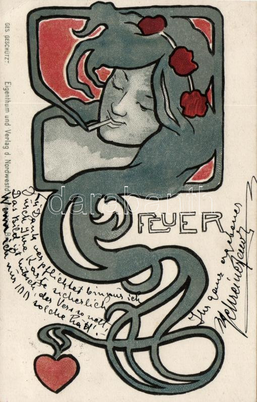 Feuer; Art Nouveau postcard, Nordwestdeutsches Antiquariat Bremen (EK) https://www.darabanth.com/de/190-Fernauktion/190.0/Ansichtskarten/Kunstlerkarten~800101/Feuer-Art-Nouveau-postcard-Nordwestdeutsches-Antiquariat-Bremen-EK~II715242