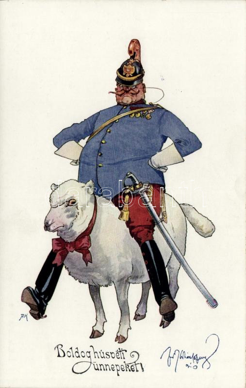 Beschreibung: K.u.K. military, Easter greeting, humour s: Schönpflug